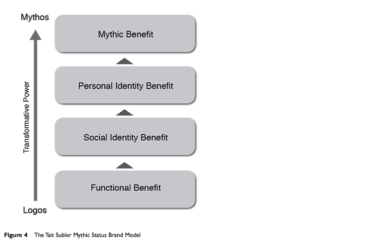 ‘A mythic status brand promises to help a consumer define a new reality. It helps us define ourselves (externally and internally), but more importantly, it promises to transform us so we can realise our greatest desires and avoid our greatest fears.’