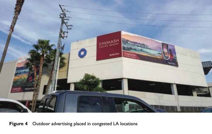 When most people think about casinos and gambling in the United States, they think of Las Vegas. Sin City. A place to drop your inhibitions and imbibe the excitement and vaguely dangerous opportunity to gamble, drink and party. Most assume the biggest, most successful casinos are situated in Las Vegas, but that is not the case. The largest casino in the world resides in Thackerville, Oklahoma, where Native American gaming thrives. In fact, Native American gaming operations dominate the list of the top 10 casinos in the US, and California is home to 2 of the largest—Pechanga Resort & Casino and San Manuel Casino (near Los Angeles (LA))(5). This is big business in terms of both gambling revenues and profits. These giant operations offer Californians the thrill of Las Vegas without the distance. San Manuel’s ubiquitous TV commercials use the tagline ‘All Thrill’ with high-gloss, effect-laden advertising to draw in LA gamblers hoping to win big and party hard. They offer Las Vegas closer to home.